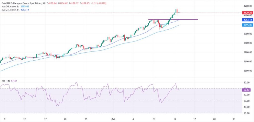 แนวรับทันทีอยู่ที่จุดต่ำสุดระหว่างวันที่ $4,090 ตามด้วยโซน $4,060-$4,050 ซึ่งได้รับการเสริมด้วยเส้นค่าเฉลี่ยเคลื่อนที่อย่างง่าย (SMA) 21 วันในกราฟ 4 ชั่วโมงที่ประมาณ $4,047 ตราบใดที่ราคายังคงอยู่เหนือพื้นที่นี้ โครงสร้างขาขึ้นที่กว้างขึ้นยังคงอยู่ในสภาพดี ในด้านบวก การทะลุเหนือจุดสูงสุดล่าสุดจะเปิดเผยระดับจิตวิทยาที่ $4,200 เป็นเป้าหมายถัดไปสำหรับขาขึ้น